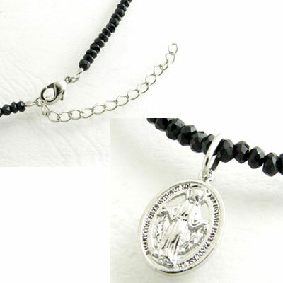 【送料無料】天然のブラックスピネル石を使用したチョーカーネックレス 漆黒の美しい輝きのチェーンにシルバーのマリア柄メダイを組み合わせました ペンダントトップを外してシンプルにスピネルチェーンだけで着用しても存在感たっぷり♪