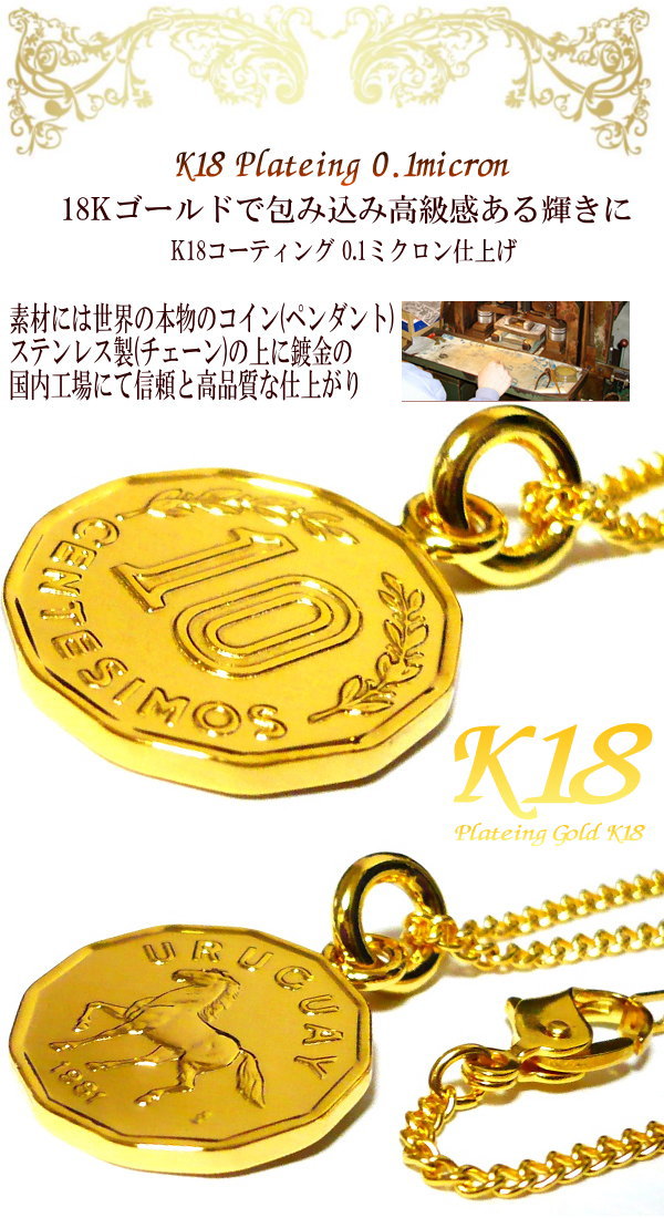■本物のコインを付けるには訳がある 特別なこだわり意味を身につける世界のアンティークコイン 人生観を変えた特別な想い入れのある国、 初めて行って人生に衝撃を与えた国、 思い出の大切な出会い、などそれぞれの想い ストーリーが詰まったこだわりの一品 ■ 1個売り ■素材 世界の本物のコイン 製(18k鍍金ゴールドコーティング0.1ミクロン仕様) チェーン部分: 下記の 天然石ネックレス から選択下さい ● ブラックスピネル ( ブラックスピネルネックレス ) ● ブラックオニキス ( ブラックオニキスネックレス ) ■長さ 36cm 40cm 45cm ■コインの年号は入荷にバラツキがあり指定不可となります
