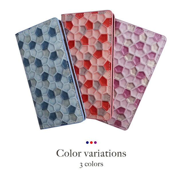 【仕様】 桔梗のつぼみを幾何学的にデフォルメした3色づかいが絶妙なイタリアンレザーの手帳型フリップケースです。