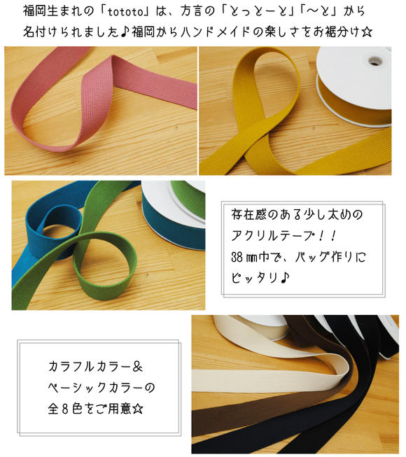 ◎tototo 38mm巾のアクリルテープ 手芸 バッグ テープ 持ち手【14】